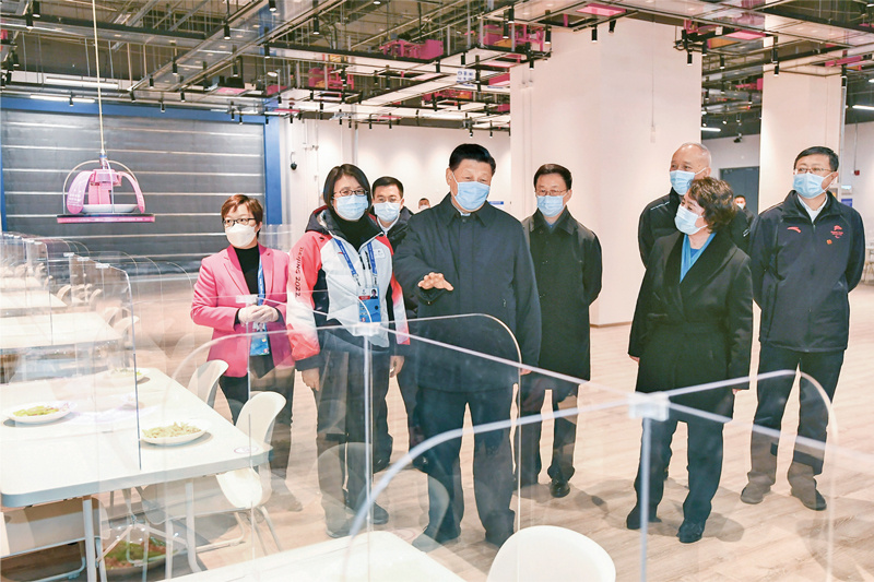 2022年1月4日,中共中央总书记、国家主席、中央军委主席习近平在北京考察2022年冬奥会、冬残奥会筹办备赛工作。这是4日上午,习近平在北京冬奥会、冬残奥会主媒体中心智慧餐厅,察看智能餐饮设备运行情况。 新华社记者 谢环驰/摄