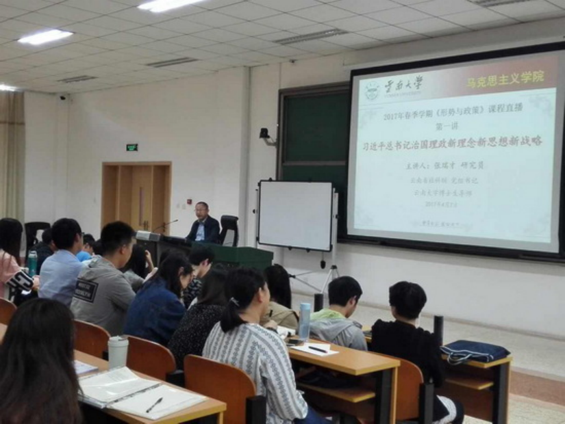 为适应新形势下高校教学改革的需求,充分发挥多媒体技术应用于教学、科研及管理工作的要求,2017年4月7日,教务处、333体育、信息技术中心共同协作,对公司全校性必修课《形势与政策》,完成了首次在两校区88间多媒体教室的同步直播。本次直播的主讲教师是社科联党组书记张瑞才研究员,其主题为:习近平总书记治国理政新理念新思想新战略。