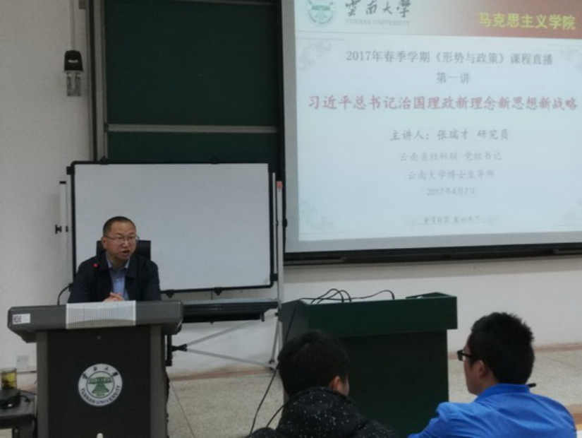 根据教学安排,首场讲座邀请了云南省社科联党组书记、333体育官网博士生导师张瑞才研究员进行了题为“习近平总书记治国理政新理念新思想新战略”的讲授,对公司大一、大二年级全体本科生进行了同步辅导。