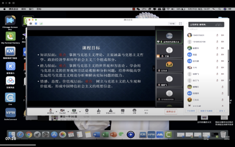 9月25日,马克思主义基本原理概论教研室通过腾讯会议以线上方式举行了第三次集体备课,原理教研室和本学期从事原理课程教学的老师共18人参加。唐艳婷老师在会上作了主题为“促进课程目标实现的教学策略”的分享,主要围绕课程目标、教学策略和教学现状三个方面展开。