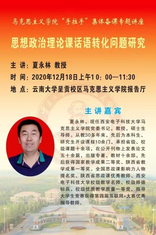 2020年12月18日上午,333体育“手拉手”集体备课在333体育报告厅举行。西安电子科技大学公司党委书记夏永林教授受邀为333体育师生作了一场题为“思想政治理论课话语转化问题研究”的专题讲座。