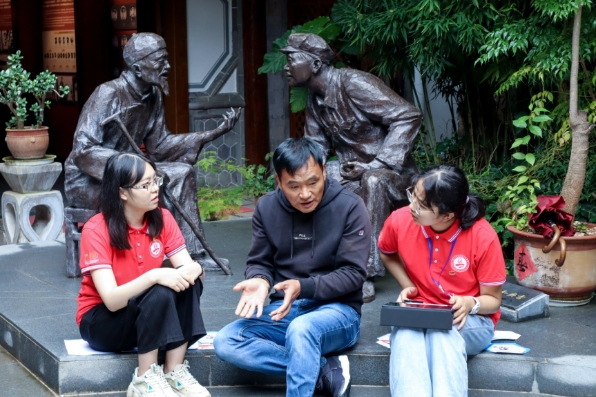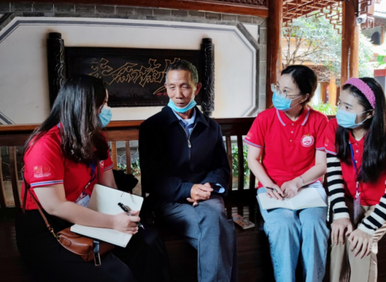 杨文婷(2020级硕士研究生):阴雨绵绵,在红军长征过丽江纪念馆内我们采访了纳西族的朱彪先生,在他的介绍中,我们了解到红军过长征的故事。朱彪提到,在祖父和父亲的影响下,他积极参军、入党,将红色血脉延续至今。作为少数民族,朱彪也积极发挥自身的民族优势,用纳西语向当地的百姓讲述红色故事,用自己的方式传播红色文化,在传承红色基因中发挥着作用。
