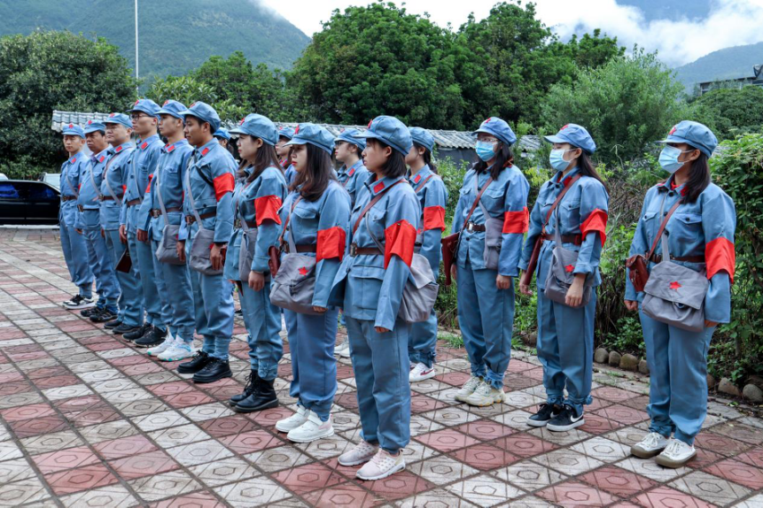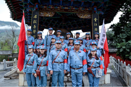 2021年8月27日上午,333体育“重走长征路,寻访英雄志”暑期社会实践服务团第一分团(以下简称实践团)抵达丽江市石鼓镇。全体师生在石鼓镇开展了一次全方位、沉浸式的思想政治理论实践教学课。课程伊始,公司党委书记赵春盛同志亲自为实践团授旗,以此开启了一堂意义非凡的实践教学体验课程。本次课程由三个部分组成:走访红色革命足迹、开展红色理论宣讲、寻访红色人物故事。