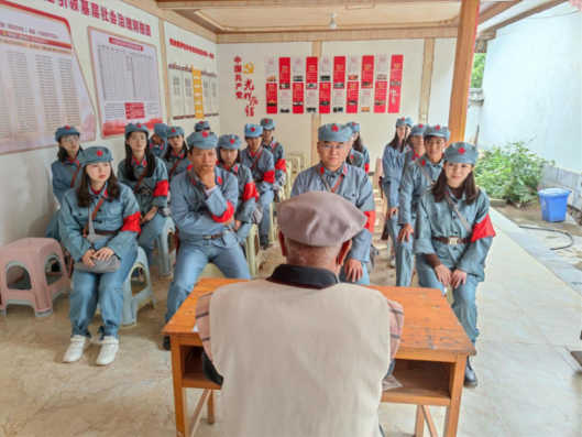 为了全方位的感受红军长征过石鼓的艰苦,全体师生在讲解员的带领下真实体验了当地村民家中的红军饭。随后,实践团来到贺龙指挥所旧址,聆听了和忠全老先生讲述的当年村民帮助红军渡过木瓜寨渡口的感人事迹。