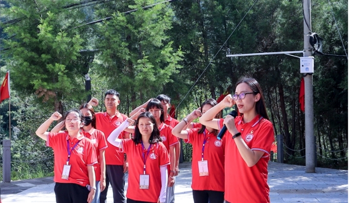 最后,马志霞老师带领全团面向党旗重温入党誓词,大家庄严宣誓。一场仪式、一次洗礼、一生铭记,入党誓词字字千钧,概括了党对党员的基本要求,也激发了青年一代学党史、跟党走的热情。