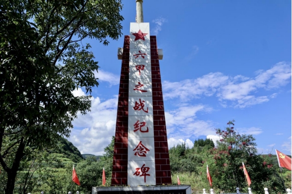 六甲之战纪念塔矗立在大道旁的高处平台上,塔身一面有“六甲之战纪念碑”七个大字,塔身背面是毛泽东手书“英勇奋斗的红军万岁”,纪念碑基柱上刻有毛泽东的长征诗以及牺牲的红军战士名录。“英勇奋斗的红军万岁”题词彰显着革命先烈的丰功伟绩,体现出后人颂扬他们英勇奋斗的革命精神。实践团的全体成员在瞻仰之后表示要继承先烈遗志,不忘初心使命,实现崇高理想的坚定决心。