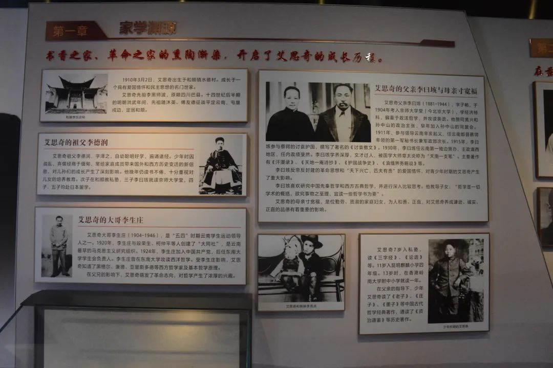艾思奇纪念馆由“艾思奇生平”、“《大众哲学》的创作背景及历史贡献”、“以人民为中心的发展思想——习近平新时代中国特色社会主义思想中的人民情怀”三个展厅构成,“艾思奇生平”展厅分为家学渊源、初历磨练、大众哲人、延安洗礼、一代宗师五个篇章,图文并茂地展现了艾思奇的人生轨迹,以及他在推动马克思主义大众化过程中所做出的艰辛努力;“《大众哲学》的创作背景及历史贡献”展厅,展出了《大众哲学》出版的近二十多种不同的版本,直观说明了当时本书的传播十分广泛,为马克思主义大众化作出了重要贡献;“以人民为中心的发展思想”展厅则展现了党的十八大以来,以习近平同志为核心的党中央为民、忧民、亲民、敬民、惠民的人民情怀,充分体现了习近平新时代中国特色社会主义思想的人民性理论品格。