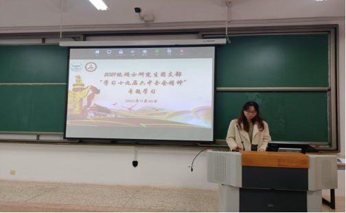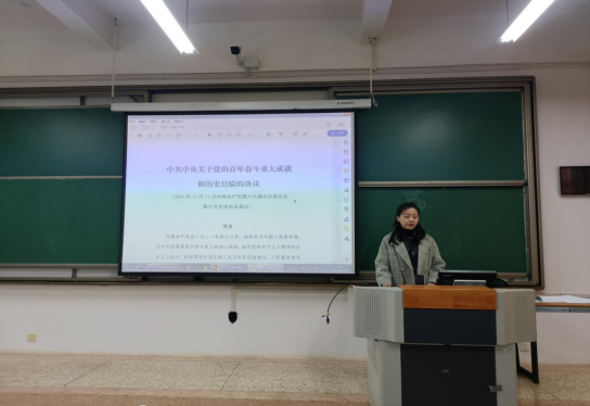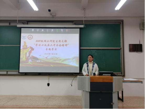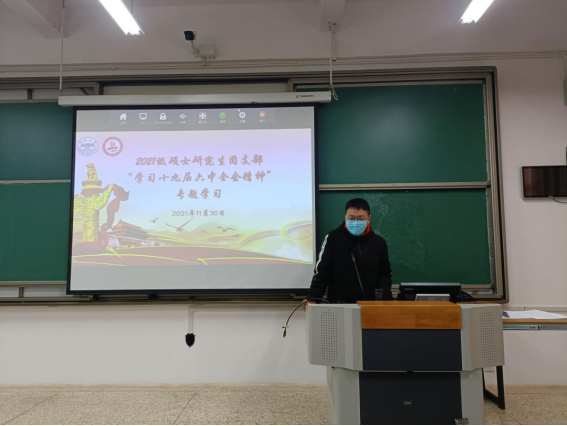活动在嘹亮的团歌声中拉开帷幕,2021级团支部书记靳澄宇同学传达学习了共青团中央《关于部署全团认真学习宣传贯彻党的十九届六中全会精神的通知》,围绕《中共中央关于党的百年奋斗重大成就和历史经验的决议》对党的十九届六中全会精神进行了宣讲。