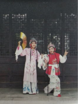 除过前面提到的谢老师在学术方面造诣很高之外,在戏曲方面也有所建树,精通越剧、京剧、昆曲等。说到戏曲谢老师总是滔滔不绝,谢老师是一位“戏痴”,脱去舞台上的戏服,现实生活中谢老师显得洒脱随性,言谈中偶尔还能体会到唱京剧的韵味。谢老师在学习和调研中逐渐喜欢上了我国优秀传统文化艺术,一步步从喜欢到学习演唱,看视屏和现场演出,向专家学习,到痴迷,利用空余时间学习,从一名爱好者变成了精通戏曲的专业人士。