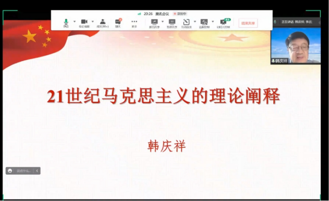 艾思奇大讲堂第18期邀请了中央党校一级教授、中央党校工作室领衔专家韩庆祥教授作了题为《21世纪马克思主义的理论阐释》的报告。韩庆祥教授是第十三届全国政协委员,原中央党校校委委员、中央党校副教育长兼哲学部主任,“21世纪马克思主义研究会”会长,马克思主义研究和建设工程首席专家,原国务院马克思主义理论学科评议组成员。曾就马克思主义哲学和历史唯物主义为中共中央政治局集体学习作讲解。在本次讲座中,韩庆祥教授从21世纪马克思主义具有“原体”规定、具有“关系”规定、具有“过程”规定、具有“空间”规定、具有“功能”规定这五个向度对21世纪马克思主义的理论内涵进行了深刻阐释。韩庆祥教授表示,21世纪马克思主义是“牢固坚守”马克思主义根本立场、价值取向、理想信念、基本原理、方法原则的马克思主义;是在“深刻反思”西方式现代化道路与拓展中国式现代化道路和创造人类文明新形态基础上发展起来的马克思主义;是世界社会主义运动中心历史性转移到当代中国,“与时俱进”地把马克思主义发展到21世纪时代和实践所需的新境界的马克思主义;是以“胸怀天下”立足中国、放眼世界、直面“两个大局”的马克思主义;是以马克思主义观察时代、把握时代、引领时代,为解决人类重大问题为“解释和引领21世纪世界”贡献科学理论体系进而掌握理论话语权的马克思主义。
