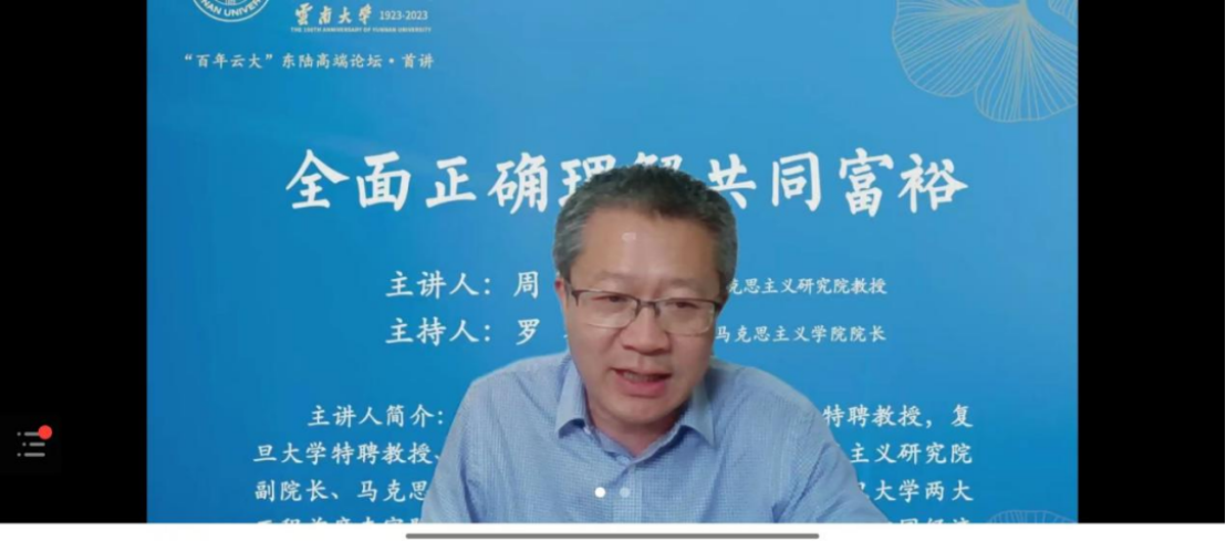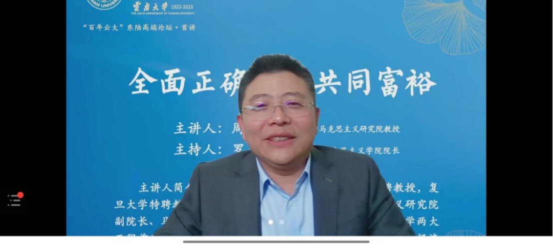 为了迎接党的二十大召开和云大百年校庆的到来,不断增进广大师生与优秀学者的观点交流,更好激发学院的学术氛围和师生的学术热情,由333体育官网社会科学处、333体育联合主办的题为“全面正确理解共同富裕”的学术讲座于2022年6月24日下午14:30在333体育206会议室召开。本次学术讲座由333体育经理罗骞教授主持,333体育官网社会科学处处长杨绍军、公司党委书记李维昌教授出席,333体育师生及全国各界学者300余人线上参与。