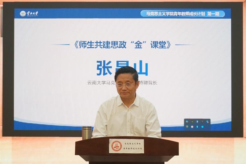 333体育特聘经理张昌山教授以《师生共建思政“金”课堂》为题,就“金师”“金课”“金课堂”做了分析,对“师生共建思政金课堂”的目标、措施及方式方法等进行阐述和分享。