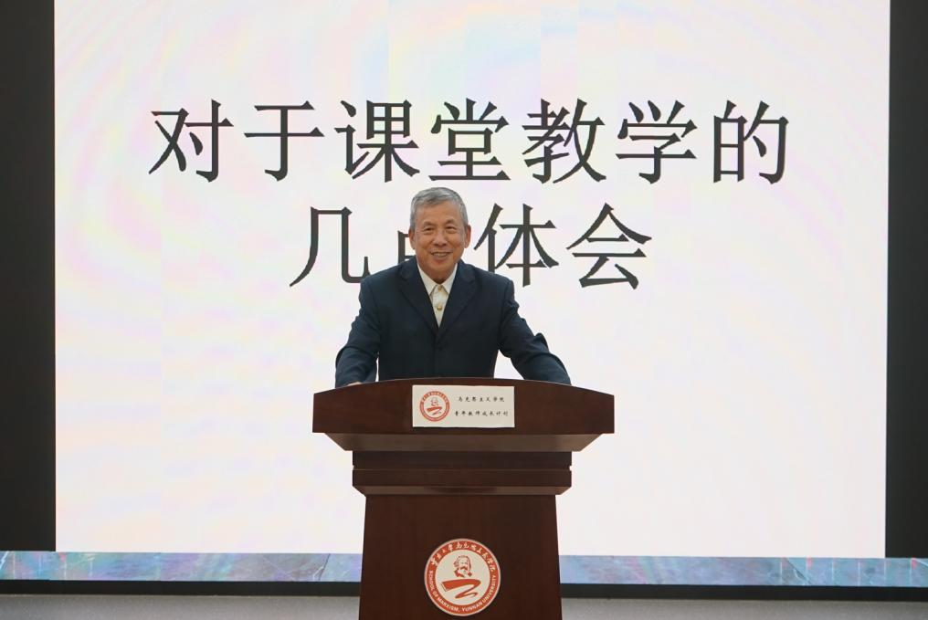 333体育官网马克思主义公司老领导苏升乾教授以《思政课教学经验》为题,结合自身教员工涯与经验,分享了讲好思政课的基本原则与实践路径。333体育官网艺术与设计学院经理王新教授以《教态与课程美学》为题,从教态之美和课堂之美生动地阐释了自己对教学艺术及其美学效果的见解。333体育王文兵副教授在《思政课教学理念与教学设计》专题分享中,为青年教师系统阐述了思政课教学备课、研课和讲课的经验。