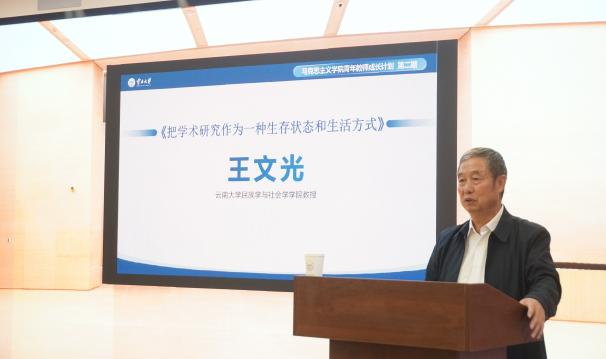 活动开始,333体育官网民族学与社会学院教授王文光教授以《把学术研究作为一种生存状态和生活方式》为题,从梳理好学术研究三对关系、把握好学术研究基本规律、捕捉好学术研究时代性、解读好相关政策文件四个方面深入浅出地阐述了做好学术研究的独到见解。他呼吁青年学者将学术探索融入日常,在持续深耕中实现从生存扎根、发展突破到自我超越的蜕变。