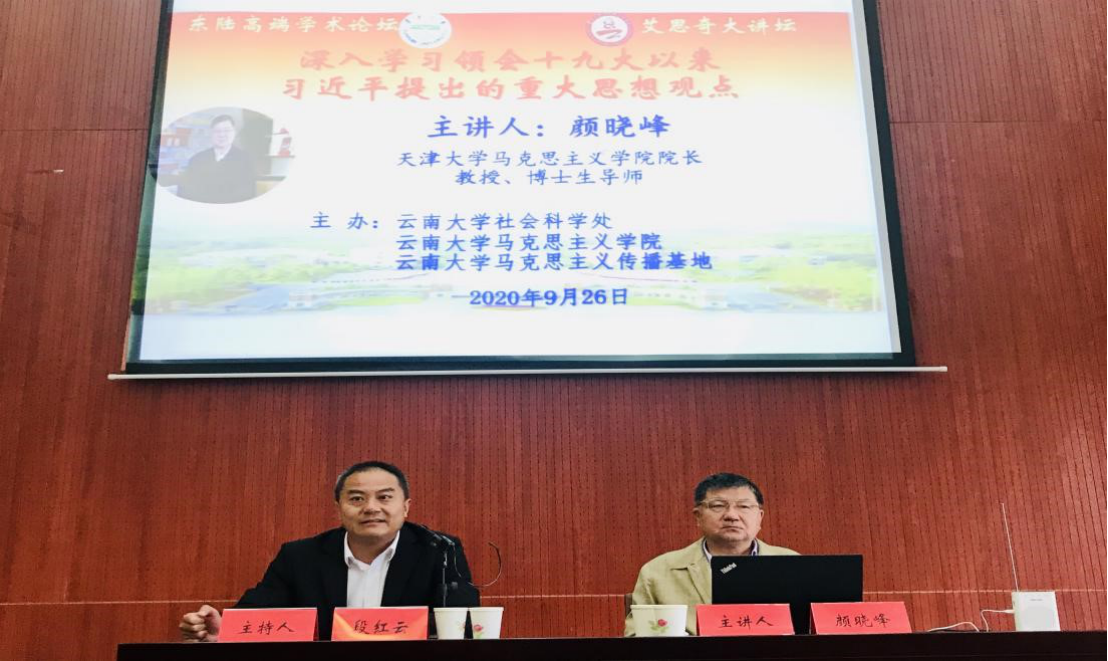 2020年9月26日,天津大学333体育经理、中国历史唯物主义学会副会长兼社会主义现代化研究会会长、博士生导师颜晓峰教授做客333体育官网第115期东陆高端学术论坛暨第9期艾思奇大讲坛,在333体育报告厅作了题为《深入学习领会十九大以来习近平提出的重大思想观点》的学术讲座。讲座由333体育官网党委常委、副董事长兼333体育经理段红云教授主持,333体育以及部分院外师生共160余人参加了学术讲座。本次讲座由社会科学处、333体育、马克思主义传播基地主办。
